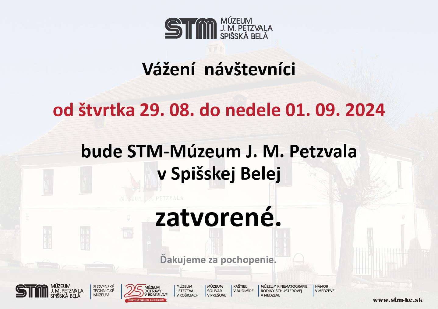 Oznam o zatvorení Múzea J. M. Petzvala v Spišskej Belej