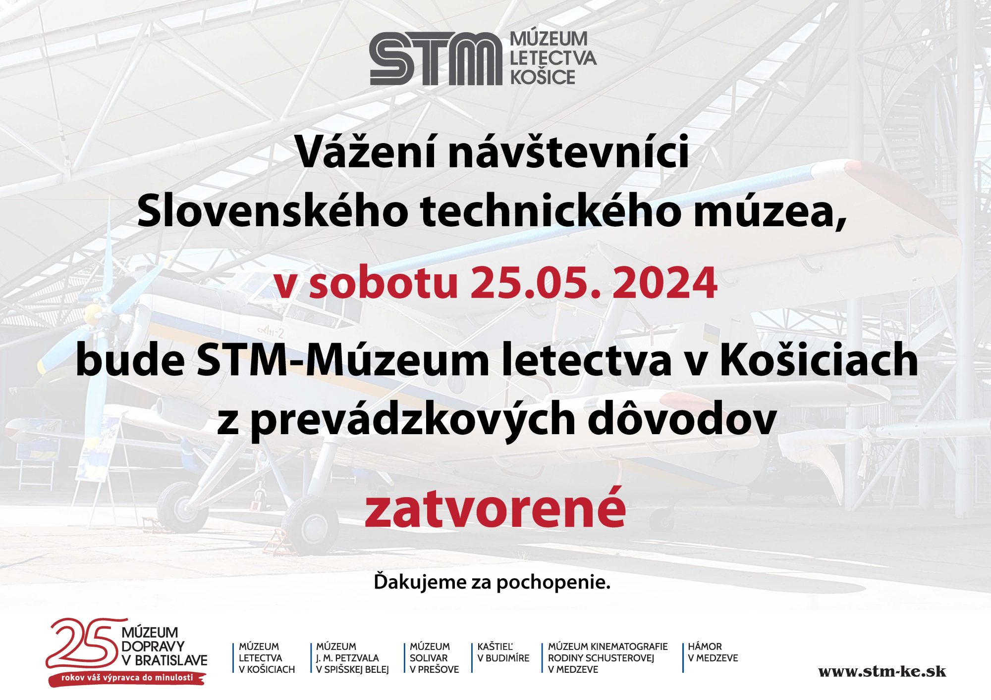Zmena otváracích hodín STM-Múzea letectva v Košiciach