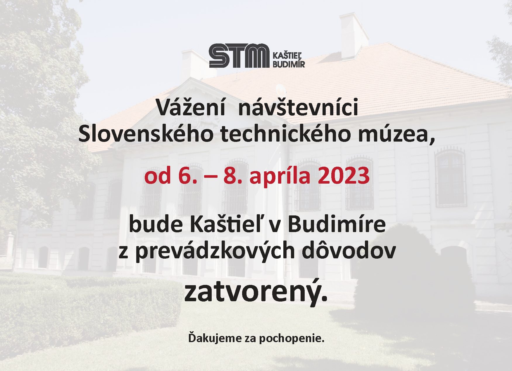 Oznam o zatvorení Kaštieľa v Budimíre