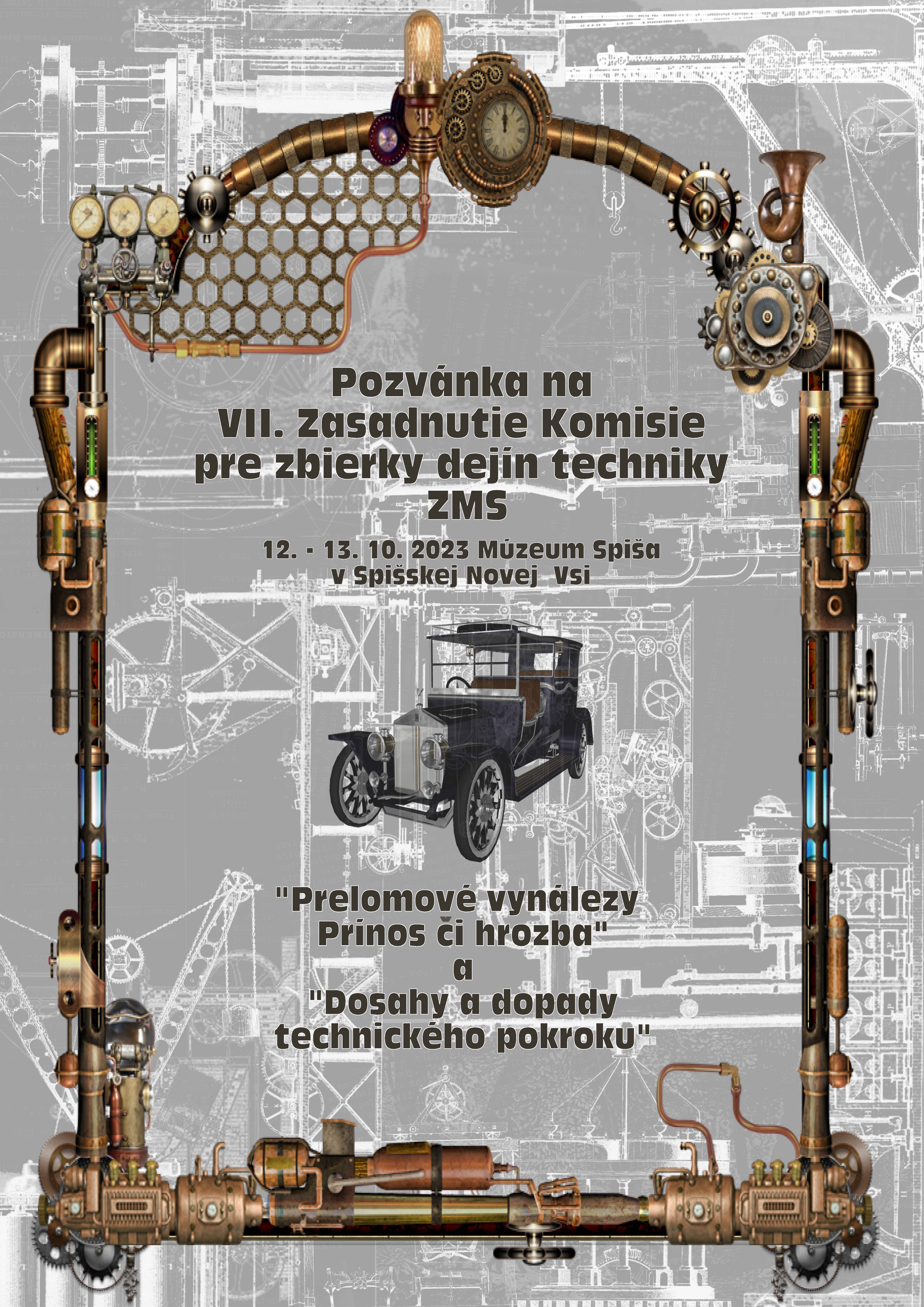 Dovoľujeme si vás informovať, že v termíne 12.-13.10.2023 sa uskutoční VII. zasadnutie Komisie pre zbierky dejín techniky ZMS v priestoroch Múzea Spiša v Spišskej Novej Vsi.